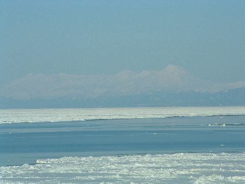 皆さんこんにちは。 寒かった冬もほぼ終わり、最高気温がプラスの日ばかりになってきました。 先の連休(21〜23日)は初日に雪が降ったようですが、 それ以外は最高気温が10度位まで上がって非常に暖かかったようです。 「ようです」というのは私はその頃十勝地方から網走方面に行っていたので、 気象データからこちらの気候を判断している為です。 冬のオホーツク海を見たのは初めて(当然流氷を観るのも初めて)だったので、 感動して帰って来ました。 時期が時期なので、流氷の一部は既に沖へ流れ出していて海面が見えていたのですが、 却って「流氷!」という感じがしていたように思います。 浜小清水の展望台から流氷越しに望む知床連山の写真をアップしておきます。